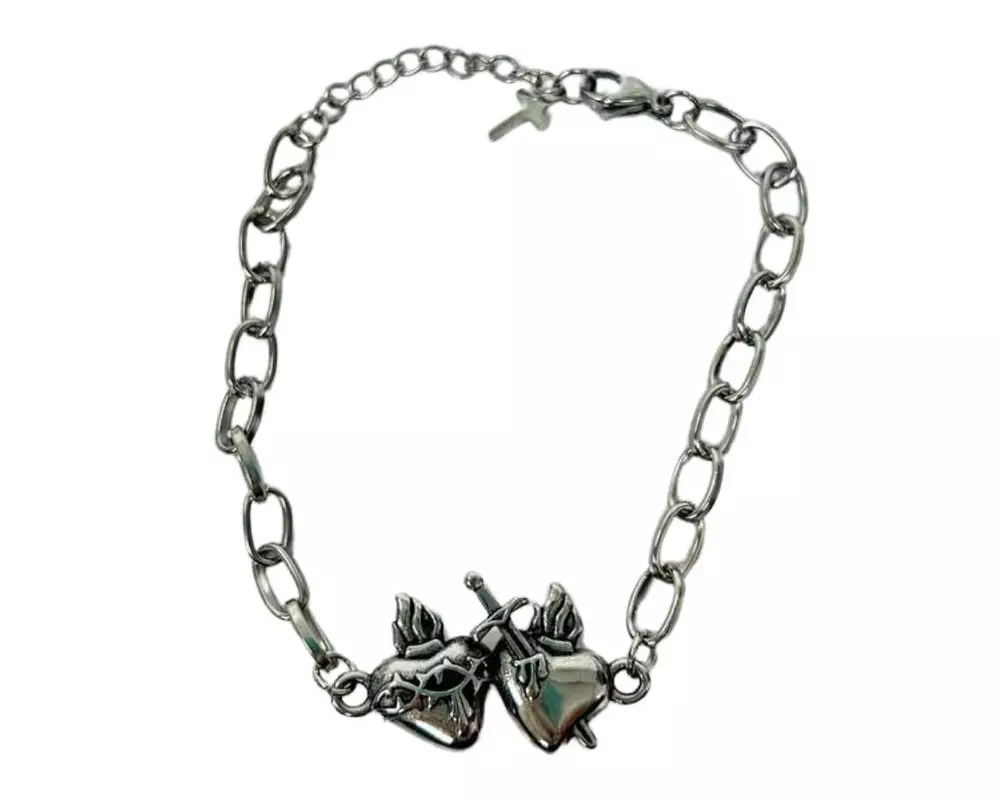Cadeia confeccionada em aço inox com acabamento prateado, trazendo detalhe do Sagrado e Imaculado Coração. Peça resistente, antialérgica e de excelente acabamento, ideal para uso diário, expressão de fé e consagração.